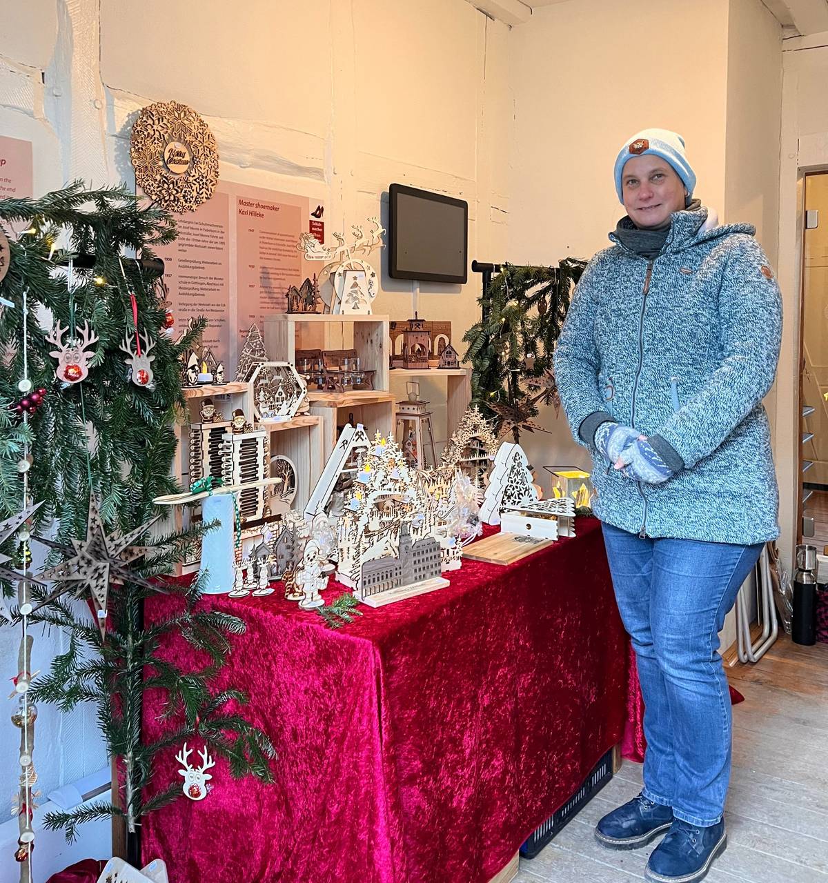 Bis Weihnachten ist es nicht mehr lange hin und es gibt in unserer Stadt viele Weihnachtsmärkte, die zum vorbeischauen einladen. So zum Beispiel im Freilichtmuseum. In den Fachwerkhäusern können regionale Anbieter ihre Handwerkskunst zum Verkauf anbieten. Das macht auch Bianka Rieke. Sie verkauft handgemachte Holz-Laser-Arbeiten.