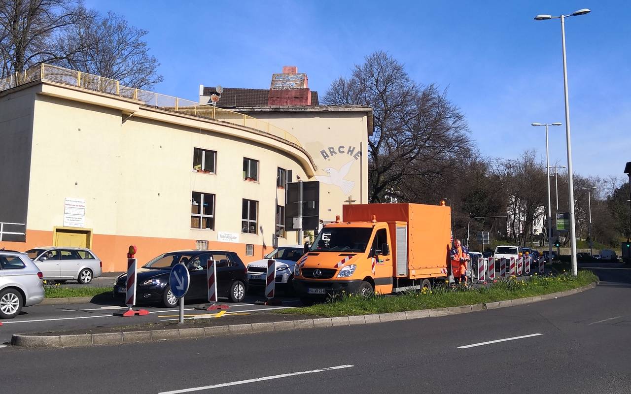 Am Emilienplatz wurden heute Vormittag Fakten geschaffen. Auf der Heinitzstraße wurde eine Linksabbiegerspur Richtung Finanzamt gesperrt. Das soll für weniger Verkehr und damit auch für weniger Schadstoffe in der Luft sorgen. Morgen wird dann die marode Rampe an der Agentur für Arbeit voll gesperrt.