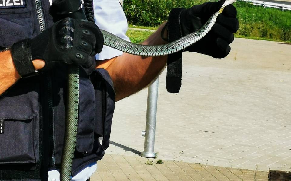 Der Mann hatte das Tier auch direkt eingefangen und dann einer Streifenwagenbesatzung übergeben. Die Polizeibeamten konnten schnell Entwarnung geben – es handelte sich um eine einheimische ungefährliche Ringelnatter. Und natürlich gab es ein Happy End: Die unverletzte Natter wurde anschließend an einem geeigneten Ort wieder ins Freie entlassen.