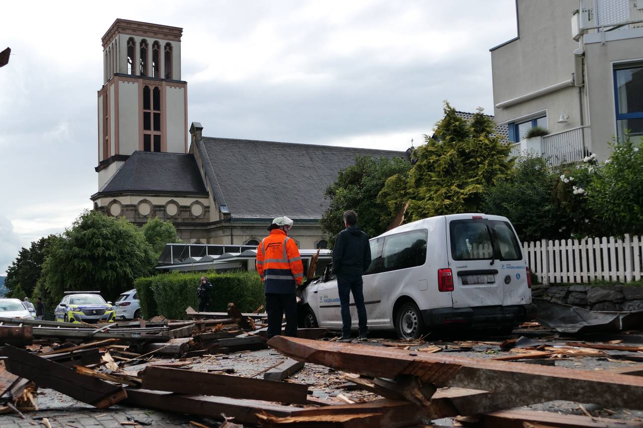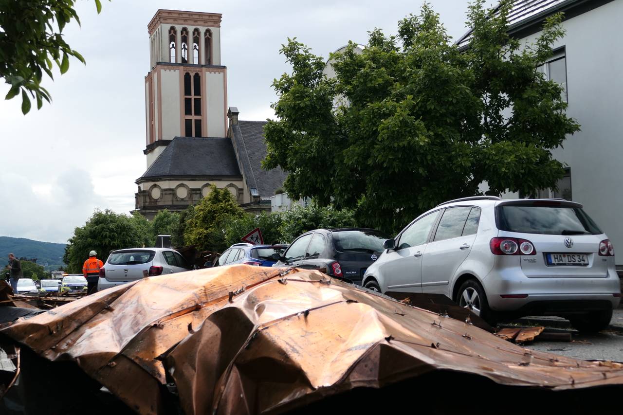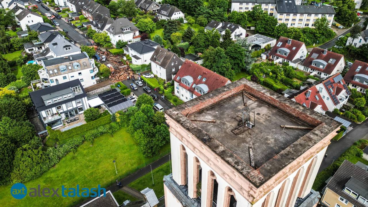 Ein heftiger Sturm hat am Mittwochnachmittag in Hagen das Dach des Kirchturms der St. Elisabeth-Kirche abgedeckt, Dächer von Häusern beschädigt, Bäume umgeworfen und Autos beschädigt.