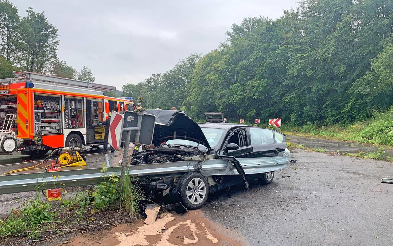 Heute Morgen hat es einen schweren Unfall im Bereich Volmeabstieg gegeben. Ein BMW prallte gegen eine Leitplanke.