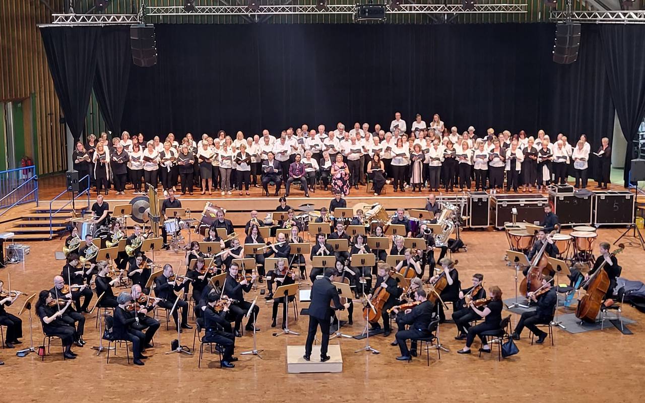 Die Stadthalle hat am Samstag (8. Juni) rund 120 Hobbysängerinnen und -sängern eine Bühne geboten. Unter dem Motto "Hagen singt für den Frieden" haben die Sängerinnen und Sänger gemeinsam mit Orchester und Solisten die Friedensmesse "The Armed Man" des walisischen Komponisten Karl Jenkins aufgeführt.