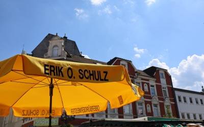 Oberbürgermeister Erik Schulz hat auch in diesem Sommer einen eigenen Stand auf den Wochenmärkten. Unterm blau-gelben Sonnenschirm will er mit den Leuten ins Gespräch kommen. Die Sommertour gibt es seit Beginn seiner Amtszeit, manchmal geht es darum, direkt nach Problemlösungen zu suchen. Manchmal wollen die Leute einfach nur etwas los werden, Lob, Kritik oder Anregungen.