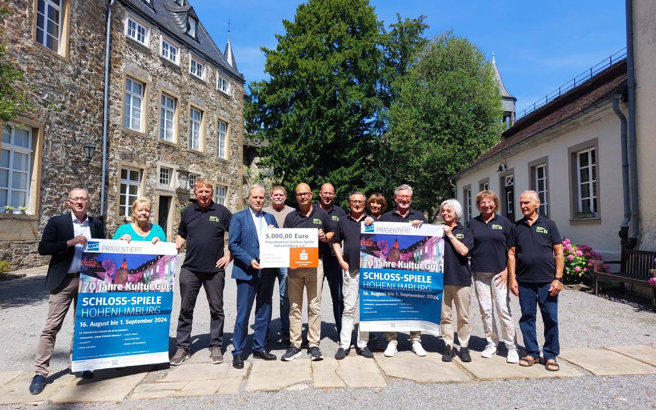 70 Jahre Schloss-Spiele Hohenlimburg heißt es dieses Jahr. Das Jubiläum im Schloss wird nicht nur mit einem besonderen Programm gefeiert, es gibt auch Geburtstagsgeschenke. Unter anderem von der Sparkassenstiftung in Hagen. Die spendet jetzt 5.000 Euro damit die Vorführungen in diesem Jahr noch besser werden.