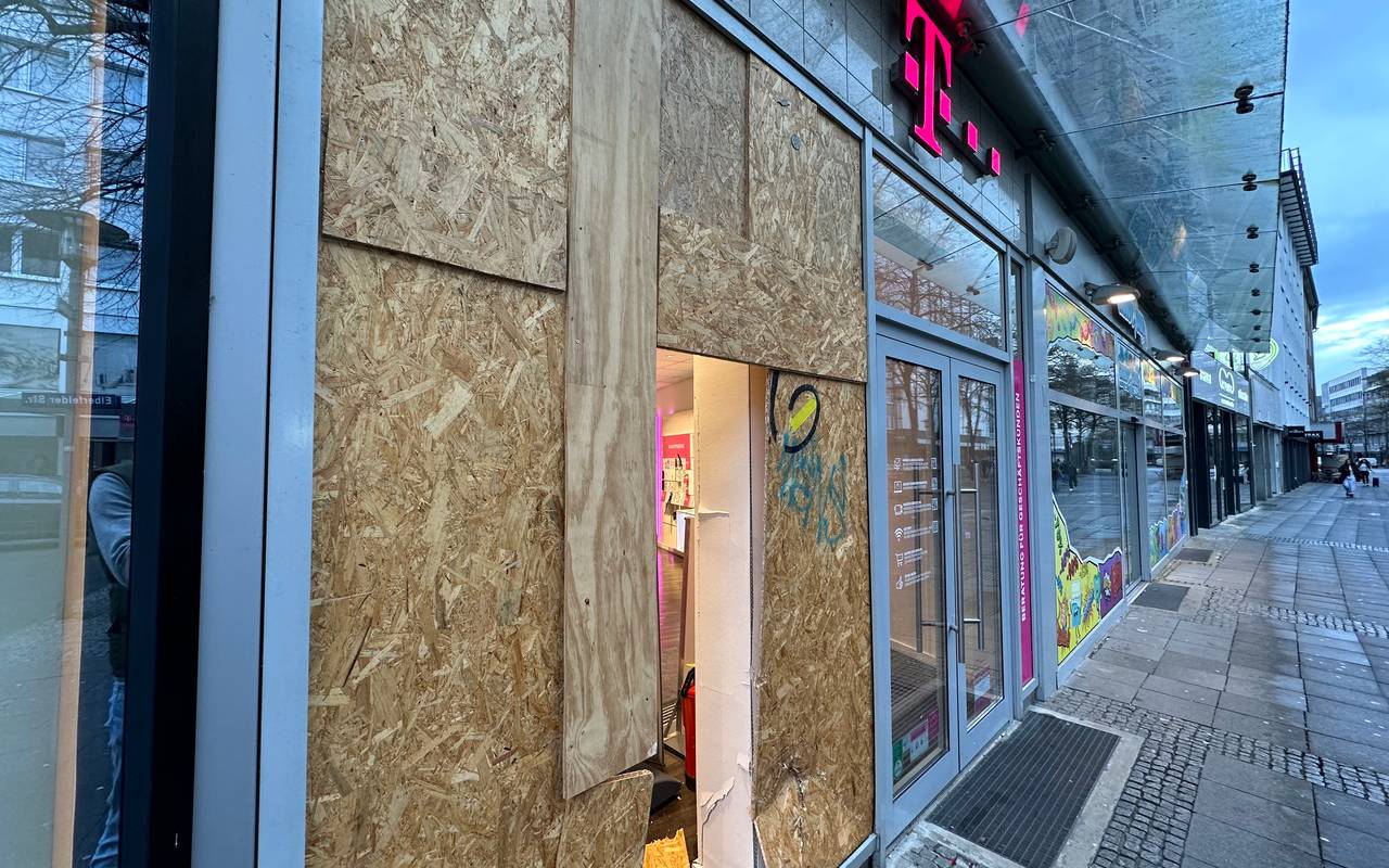 Das Schaufenster des Telekom-Shops wurde notdürftig mit Sperrholzplatten geschlossen. Wann eine abschließende Reparatur erfolgen kann ist aktuell noch unklar. Mitarbeiter halten seit dem frühen Morgen die Stellung. Sie durften sich im Gespräch mit Radio Hagen nicht zu dem Einbruch äußern.