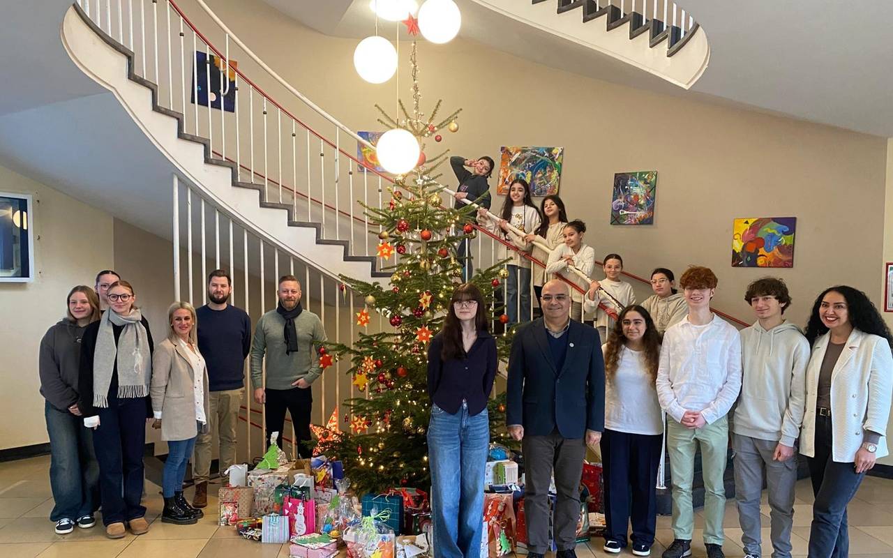 Ein großer Tannenbaum steht in der Eingangshalle des Ricarda-Huch-Gymnasiums und darunter lassen sich viele bunte Geschenke finden. Die sind für die Kinder der Jugendhilfe Selbecke. Vier Schüler des Gymnasiums haben eine Spendenaktion gestartet, um den Kinder Ihre Wünsche zu erfüllen. Die vier Zehntklässler, humanitäre Scouts genannt, haben die Wunschbaumaktion selbst organisiert und dazu auch Plakate gestaltet, um in der Schule dafür zu werben. Fünfzig Sterne wurden am Anfang bereit gestellt, jeder Stern ein Wunschzettel, und an den Baum gehangen. Zur Überraschung der Scouts haben Ihr Mitschüler aber schnell jeden der fünfzig Sterne vom Baum genommen, um sich zu beteiligen.