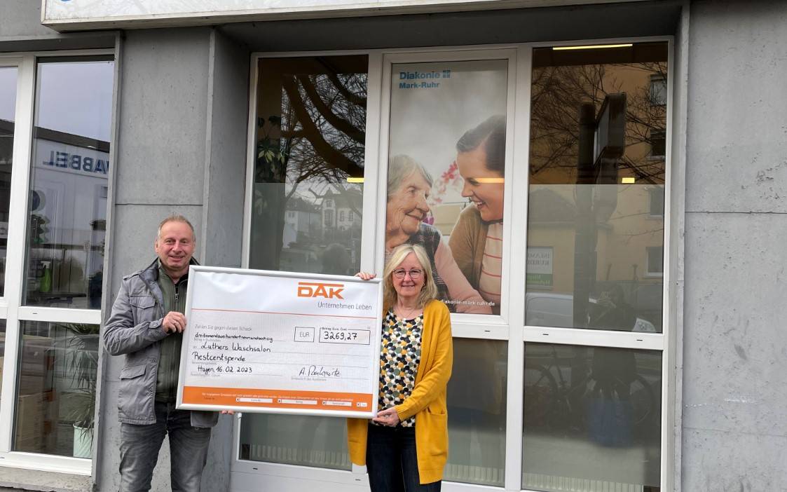 Die Mitarbeitenden der DAK in Hagen verzichten dabei auf den Centbetrag ihres Gehalts und können dabei auch auf fünf Euro aufrunden. Das Geld kommt in einen Spendentopf und der wird reihum für den guten Zweck gespendet. Jetzt gibt es die krumme Summe in Höhe von 3.269,27 Euro für Luthers Waschsalon. Die Einrichtung der Diakonie ist Anlaufstelle für Menschen in prekären Wohnsituationen – und davon gibt es in der aktuellen Situation immer mehr. Viele Menschen nutzen die kostenlosen Waschgelegenheit, das Frühstück, Gespräche und die medizinischen Angebote.