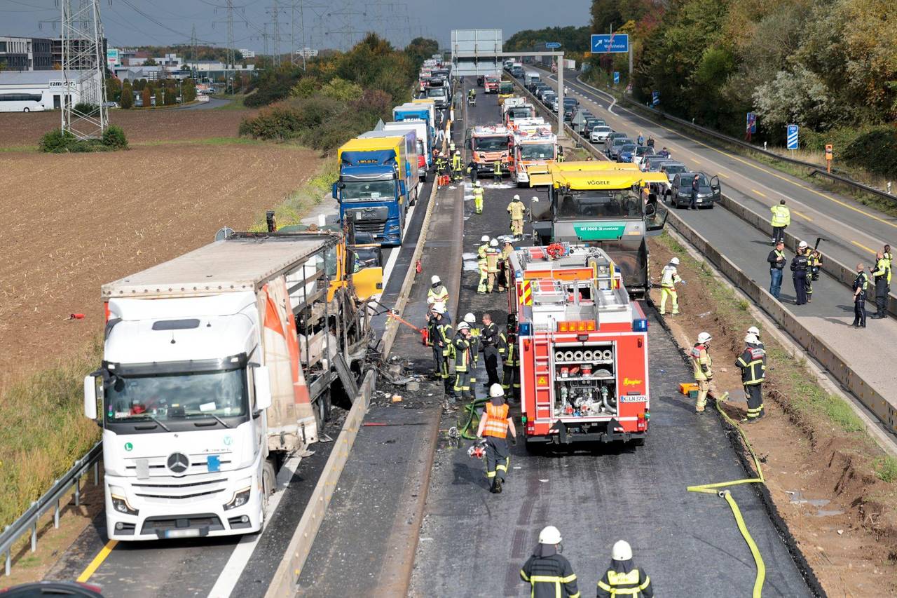Nach ersten Erkenntnissen der Polizei war ein Wohnmobil aus noch ungeklärter Ursache am Vormittag im Bereich einer Baustelle auf einen vorausfahrenden Lastwagen aufgefahren. Ein nachfolgendes Auto sei unter das Wohnmobil geraten – beide Fahrzeuge fingen Feuer.