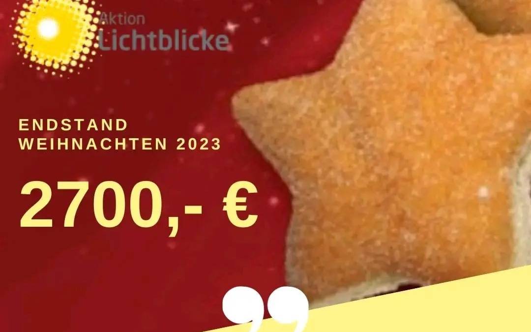 Im Jubiläumsjahr ist viel Geld für die Aktion Lichtblicke zusammengekommen. Aktueller Spendenstand sind knapp 3 Millionen Euro. Unsere Spendenaktion unterstützt Kinder, Jugendliche und Familien aus NRW, die unverschuldet in Not geraten sind.