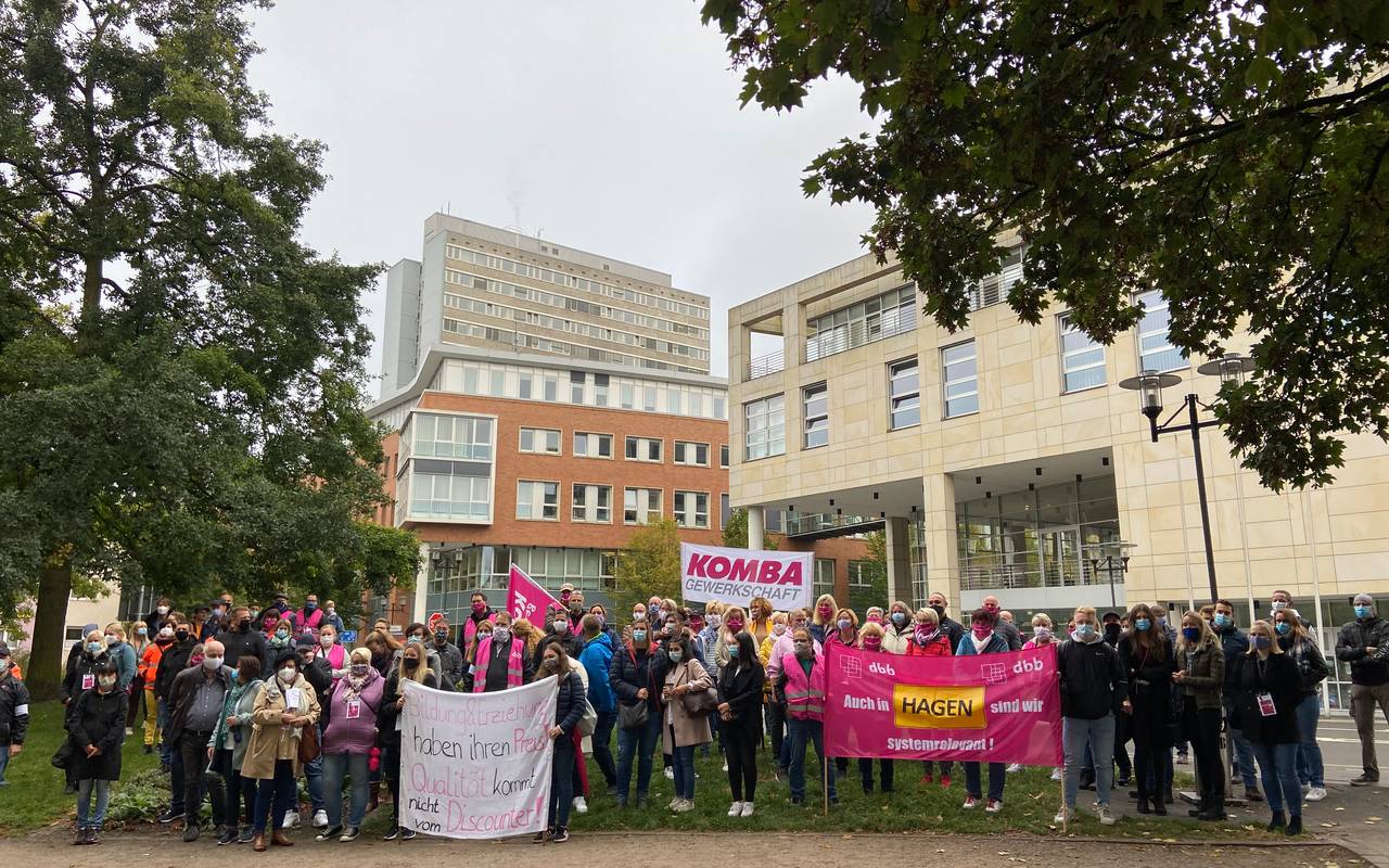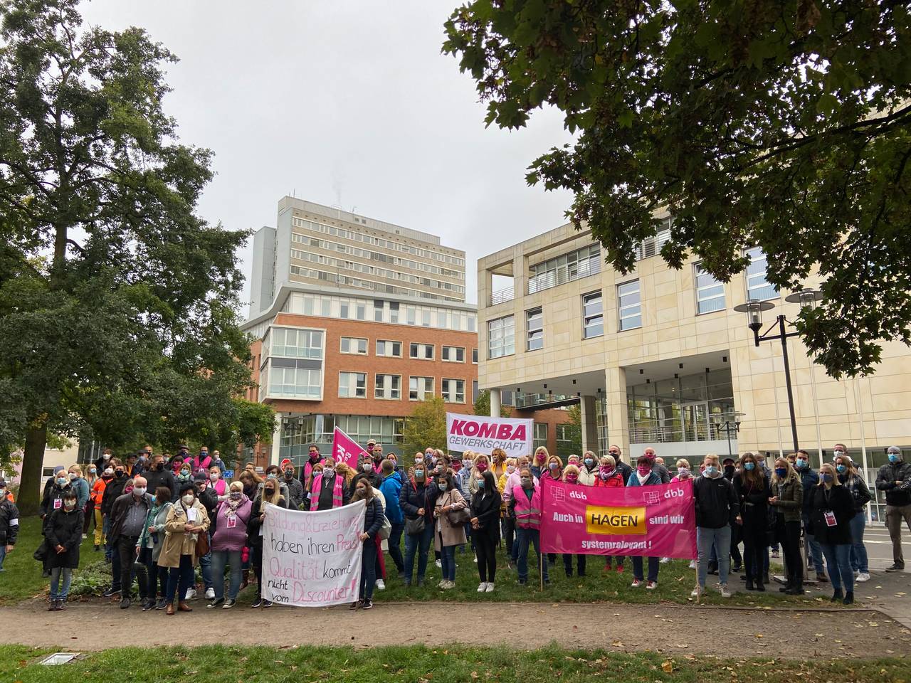 Den aktualisiert die Hagener Straßenbahn ständig auf ihrer Homepage. In verschiedenen Demonstrationszügen bewegen sich die Beschäftigten ab 8.45 Uhr auf den Theaterplatz zu. Dort findet dann um 9.15 Uhr eine Kundgebung statt. Auch im Ischelandstadion treffen sich Streikende, dort gibt es um 9 Uhr eine Kundgebung. Und auch die Gewerkschaft Komba unter dem Dach des Deutschen Beamtenbundes ruft zu einem ganztägigen Warnstreik auf. deren Mitglieder treffen sich um 9.30 Uhr im Ferdinand-David-Park. Den Link zur Homepage der Straßenbahn AG gibts hier: