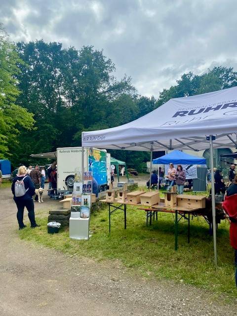 Auch an den Ständen bieten sich vielfältige Möglichkeiten zum Beobachten, Erkunden und Mitmachen. Kleine und große Gäste können Insektenhotels, Kleinvogel-Nisthilfen oder Fledermaus-Kästen bauen und erwerben. Es gibt auch viele andere Dinge für den heimischen Garten - wie Wildblumensamen, Obstbäume oder Bio-Kompost.