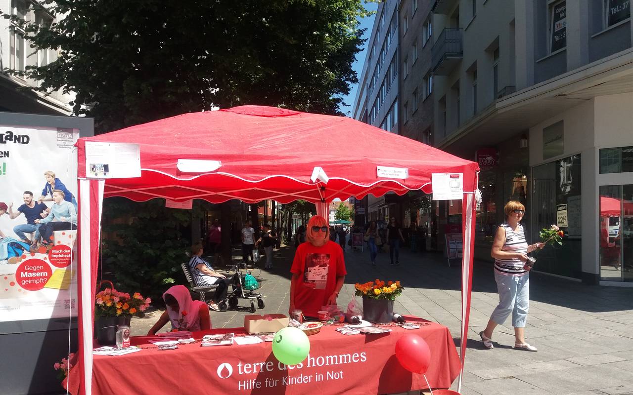 Besonders wichtig ist die psychosoziale Betreuung traumatisierter geflüchteter Kinder und Jugendlichen. Jeder Spender erhält als Dankeschön eine Rose. Der Tag der Rose ist jetzt am Samstag, der Stand von terre des hommes steht von 11.00 - 14.00 in der Fußgängerzone an der Ecke Elberfelder Straße / Ecke Hohenzollernstraße.