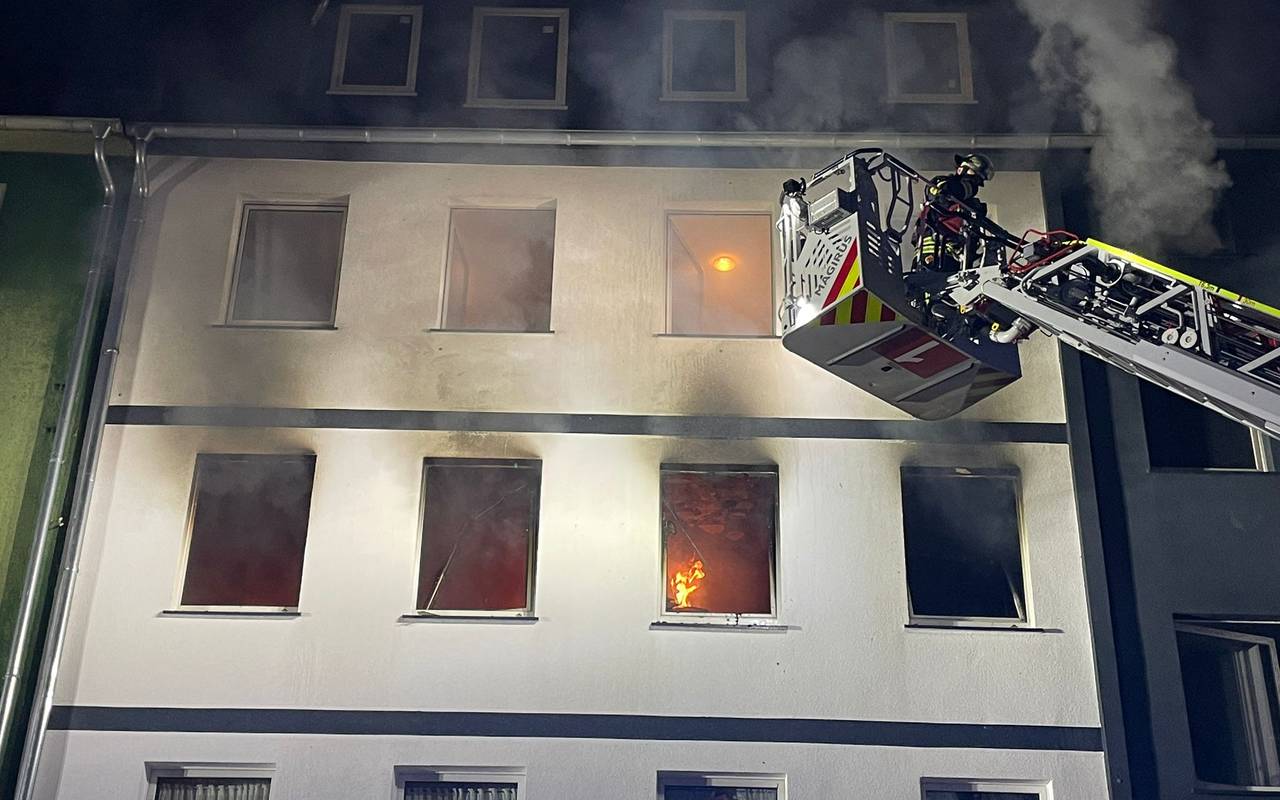 Bei einem ausgedehnten Wohnungsbrand sind insgesamt 8 Menschen aus der Wohnung gerettet worden, teils über die Drehleiter.