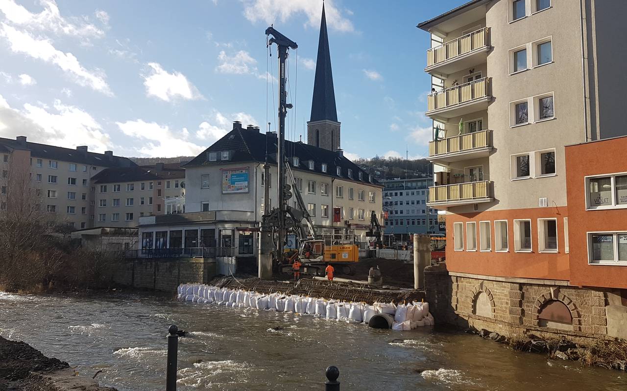 Der Neubau der Marktbrücke läuft bisher nach Plan. Nachdem die alte Brücke abgerissen wurde, geht es nun an den Bau der neuen. Dazu werden aktuell 16 Bohrpfähle in den Boden eingebracht, die hinterher die Brücke halten sollen. Das gesamte Konstrukt soll wie geplant noch in diesem Jahr fertiggestellt werden, sagt Arne Schwarz vom Wirtschaftsbetrieb Hagen.