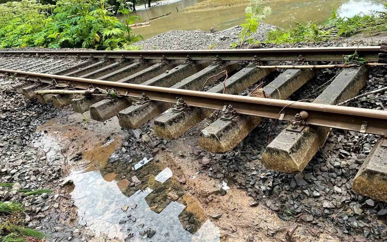 Ein Jahr nach der Flut gibt es auf der Bahnstrecke zwischen Rummenohl und Brügge weiter Probleme. Das Hochwasser hat die Volmebrücke auf der Zugstrecke heftig beschädigt. Ein Stützpfeiler weist so gravierende Schäden auf, dass eine umfangreiche Instandhaltung nötig ist.