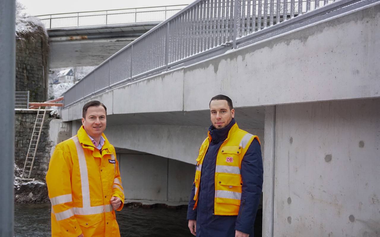 Die Volmebrücke in Lüdenscheid-Brügge wurde im Sommer 2021 vom Hochwasser beschädigt. In den letzten Monaten wurde sie deshalb erneuert. Die neue Brücke hat keinen Mittelpfeiler mehr und soll dadurch besser vor weiteren Hochwassern geschützt sein.