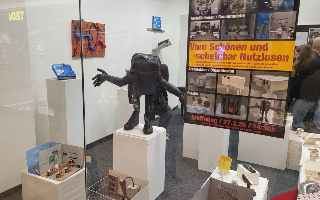 Vom 27. März bis zum 11. April gibt es eine neue Ausstellung im Kunstschaufenster der Rathaus Galerie zu sehen. Schülerinnen und Schüler des Ricarda-Huch-Gymnasiums stellen hier ihre Werke aus.