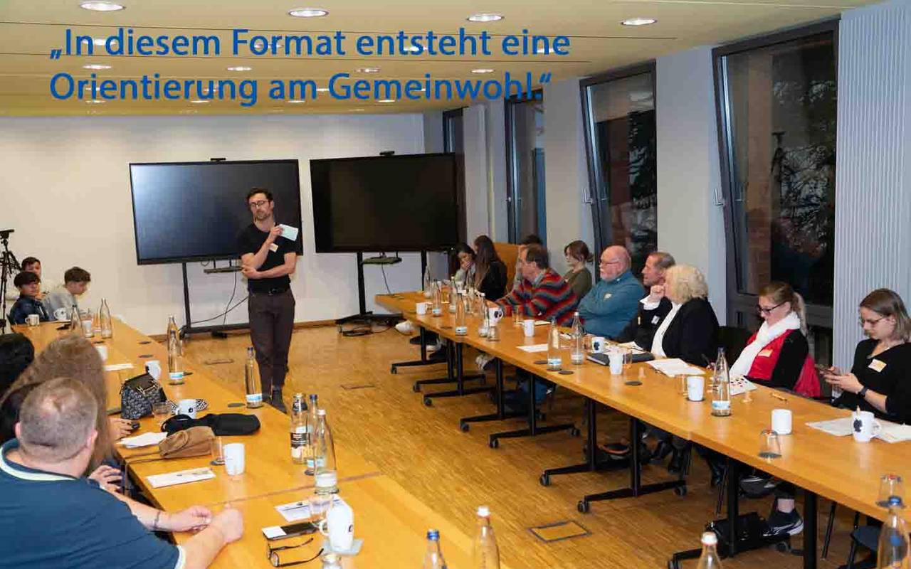 Bei diesem Gesprächsformat entstehe eine "Gemeinwohlorientierung", sagt Mitveranstalter Paul Naudascher. Die üblichen starken Stimmen, die sonst mitmischen würden oft stark eigene Anliegen vertreten.