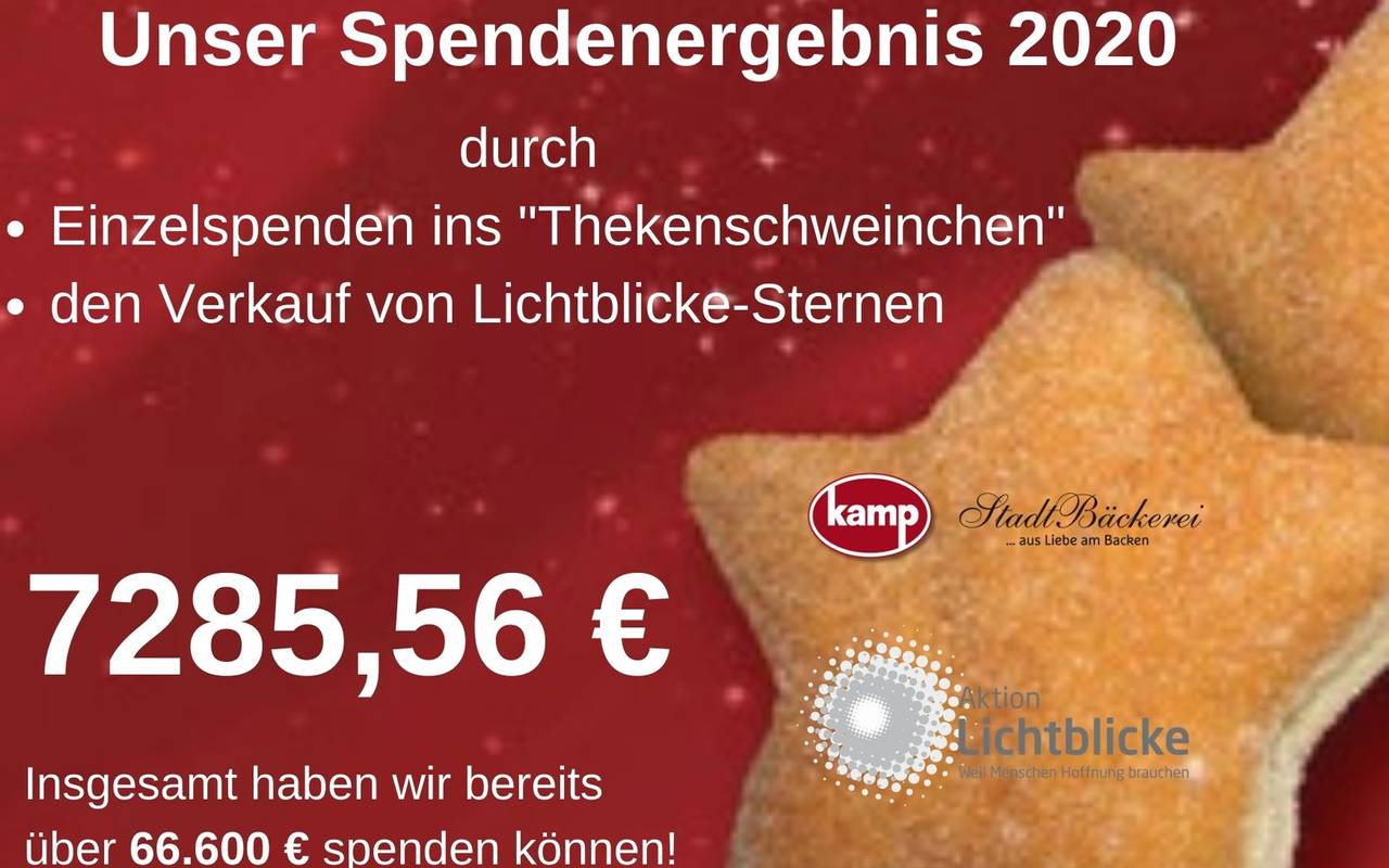 Dickes Dankeschön an alle Fans der Lichtblicke-Sterne! Großartige Summe! DANKE!!! Knapp 7.300€ - durch den Verkauf von Lichtblicke-Sternen. Auch die Spendenschweinchen in den Geschäften wurden gut gefüttert. Insgesamt hat Kamp schon über 60.000 Euro für Lichtblicke gesammelt.