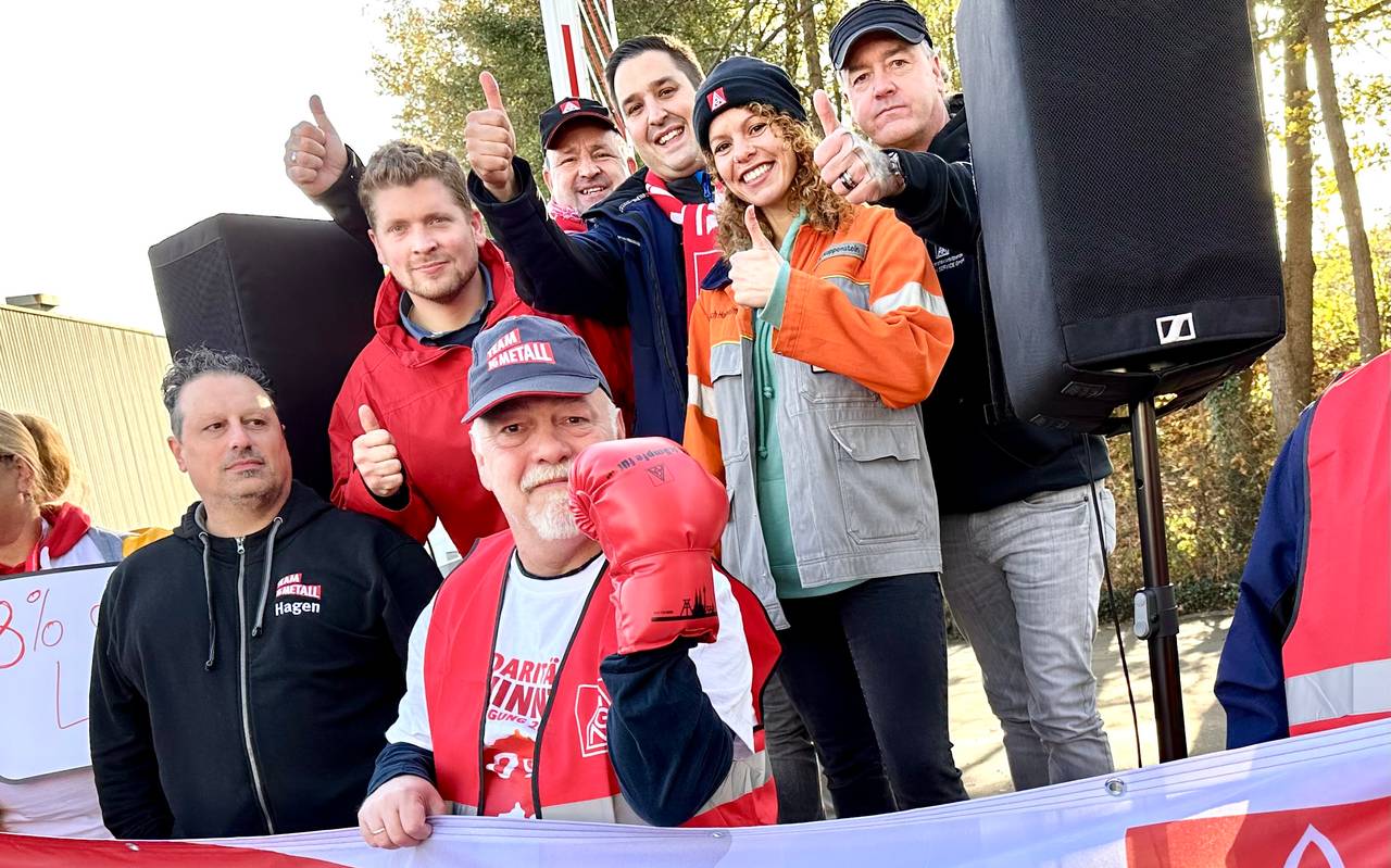 Rund 200 Metaller beteiligen sich an dem Warnstreik bei Waelzholz im Lennetal heute.