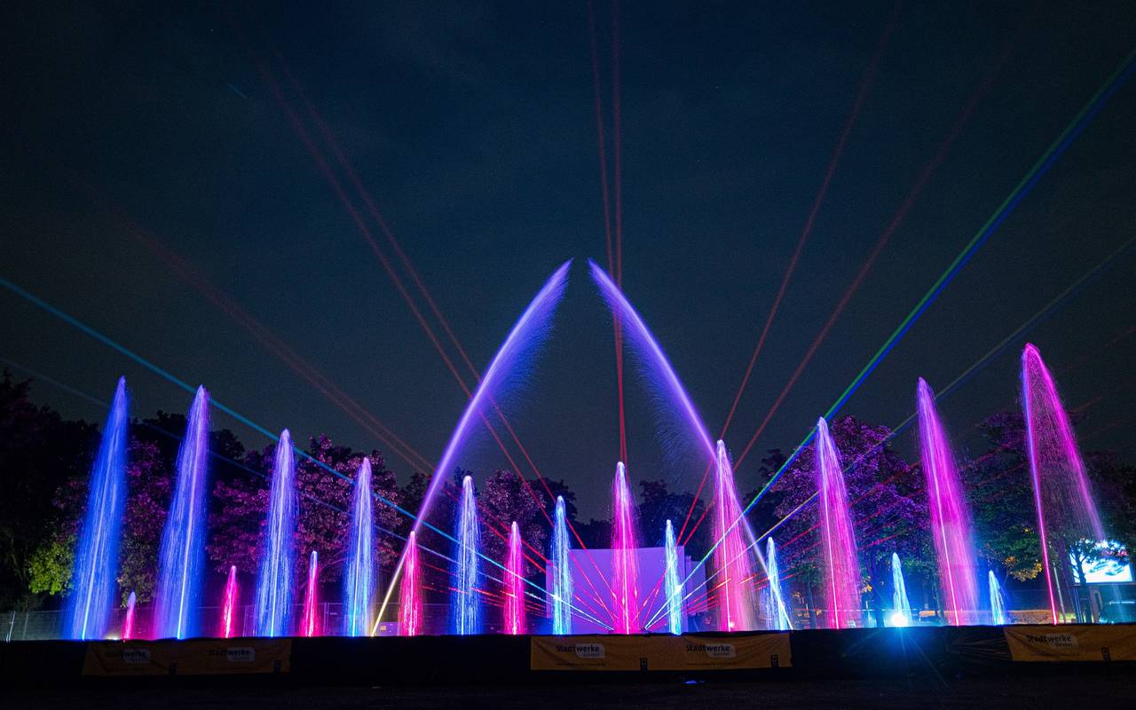 Dafür wird heute ein Wasserbecken auf der Wiese im Volkspark aufgebaut. Aus diesem schießen bunte Fontänen über zehn Meter in die Höhe. Das Vorstellungen werden mit Musik begleitet und dauern jeweils eine Viertelstunde. Los geht es um 18:30 Uhr, 19 Uhr und 19:30 Uhr. Nochmal zur Info: Auf dem gesamten Weihnachtsmarkt gilt die 2G-Regel.