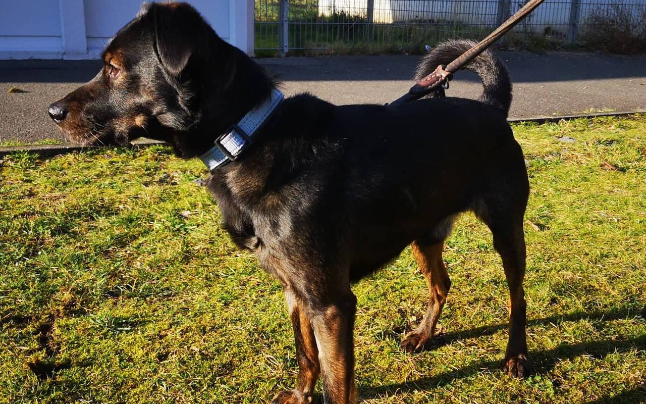 Er wird auf ein bis zwei Jahre geschätzt und ist total lebhaft und verspielt. Der Rüde ist wahrscheinlich ein Terrier-Mischling.