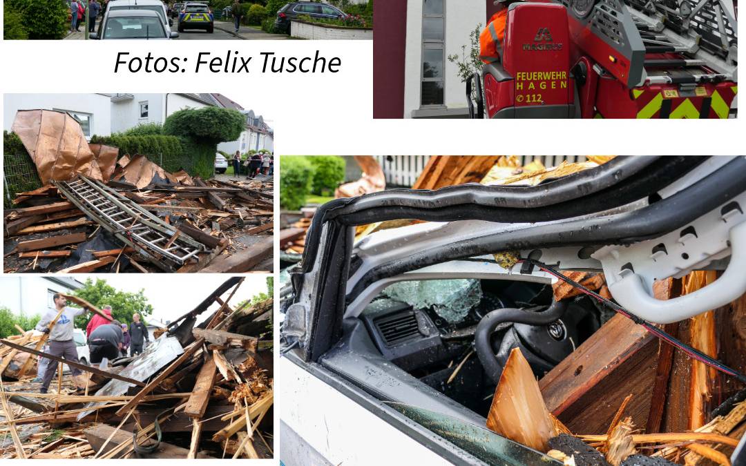Das Autobahnkreuz Hagen musste gesperrt werden, auch dort waren Bäume auf die Fahrbahn gestürzt. Betroffen sind die Beethovenstraße, die Heinitzstraße, die Elberfelder Straße, die Feithstraße, die Kreishausstraße, Im Alten Holz, die Spannstiftstraße, die Lützow- und die Lortzingstraße, die Berchumer-, Dolomi- und Hardenbergstraße sowie die Fleyer Straße. Die Feuerwehr ist nach wie vor im Einsatz. Das Wetterphänomen hatte sich nicht angekündigt und war so schnell vorbei wie es gekommen war.
