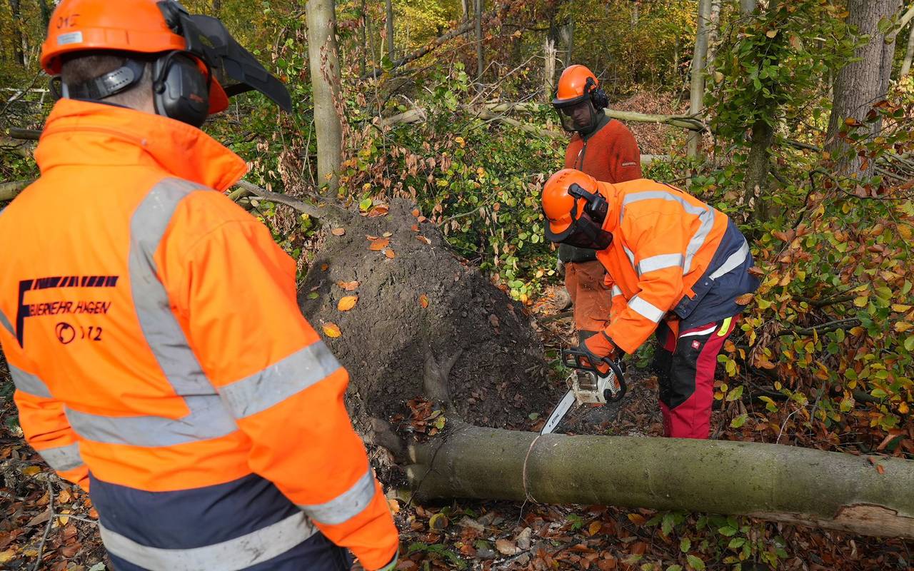 Im Hamperbach gab es ein ähnliches Problem: Auch hier fiel ein Baum auf die Straße. An der Haldener Straße drohte großer ein Ast zu fallen. In Dahl ist ein Baum auf das Gebäude eines Altenwohnheims gestürzt.