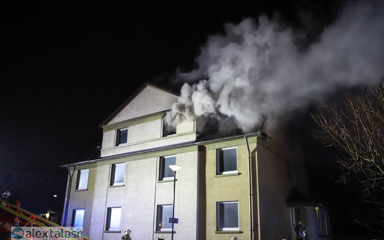Das Feuer war in einem Mehrfamilienhaus an der Straße "Am Baum" ausgebrochen. Als die Feuerwehr eintraf, stand ein Mensch am Fenster der Dachgeschosswohnung und machte auf sich aufmerksam. Die Feuerwehr konnte ihn mit Hilfe der Drehleiter rechtzeitig retten.