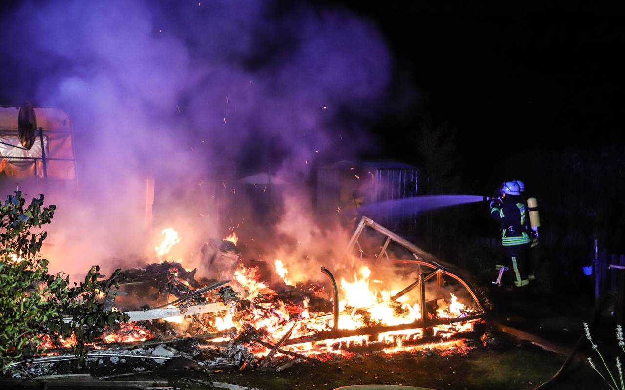 Aufmerksame Angler wählten den Notruf gegen 22:25 Uhr – als die Einsatzkräfte eintrafen brannte ein Wohnwagen samt Vorbau in voller Ausdehnung. Ein Übergreifen auf weitere Wohnwagen konnte durch das schnelle Eingreifen der Feuerwehr verhindert werden. Allerdings wurden durch den Brand zwei Wohnwagen durch die Hitzeentwicklung in Mitleidenschaft gezogen. Der Sachschaden ist erheblich, Personen kamen nicht zu Schaden. Die Brandursache ist bislang noch unklar. Die Polizei hat die Ermittlungen aufgenommen.